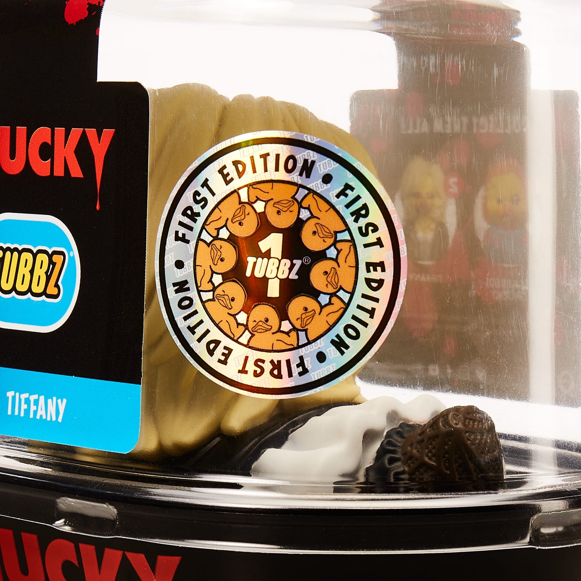 - A "First Edition" TUBBZ. Comes in a collectible bathtub, with the Chucky logo, "First Edition" printed on the duck base and a sticker on the packaging.