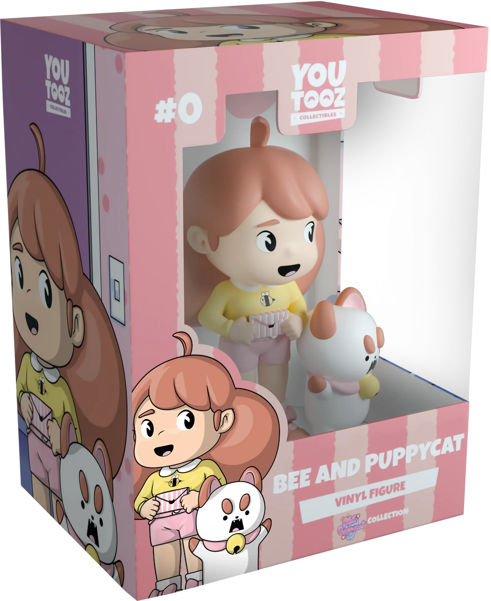 Bee et PuppyCat ont reçu leur prochaine mission et se dirigent directement vers Youtooz pour leurs débuts ! L'abeille mesure 4,1 pouces de hauteur avec une courte frange brune balayée sur le côté alors qu'une courte touffe de cheveux dépasse du milieu de sa tête et le reste tombe en un gros paquet rond dans son dos. Les yeux brillants et la bouche ouverte, elle tient à deux mains une enveloppe de travail temporaire à rayures roses et blanches alors qu'elle porte une chemise jaune à manches longues avec un col blanc et un imprimé abeille sur le devant. Sa tenue est complète avec un short rose court et des chaussettes blanches qui dépassent des chaussures marron à lacets roses. À ses côtés se trouve le PuppyCat fidèle, fidèle et absolument jamais grossier, qui se tient debout avec ses pattes brunes levées haut et laisse échapper un cri de colère d'une bouche dentée acérée alors que ses sourcils épais s'abaissent en un froncement de sourcils. L'extérieur de leur emballage montre un canapé bleu confortable avec un tapis posé sur le dos alors qu'il est assis devant un mur à pois roses. Alors que l'intérieur est un motif répétitif d'aubergines colorées sur fond blanc, celui-ci s'étend ensuite sur la pochette de protection qui montre parfaitement leur silhouette à travers la grande fenêtre d'affichage transparente située à l'avant. Cet objet de collection est livré dans une pochette extérieure de protection mate en relief et un protecteur en plastique de taille personnalisée pour une protection maximale pendant l'expédition.