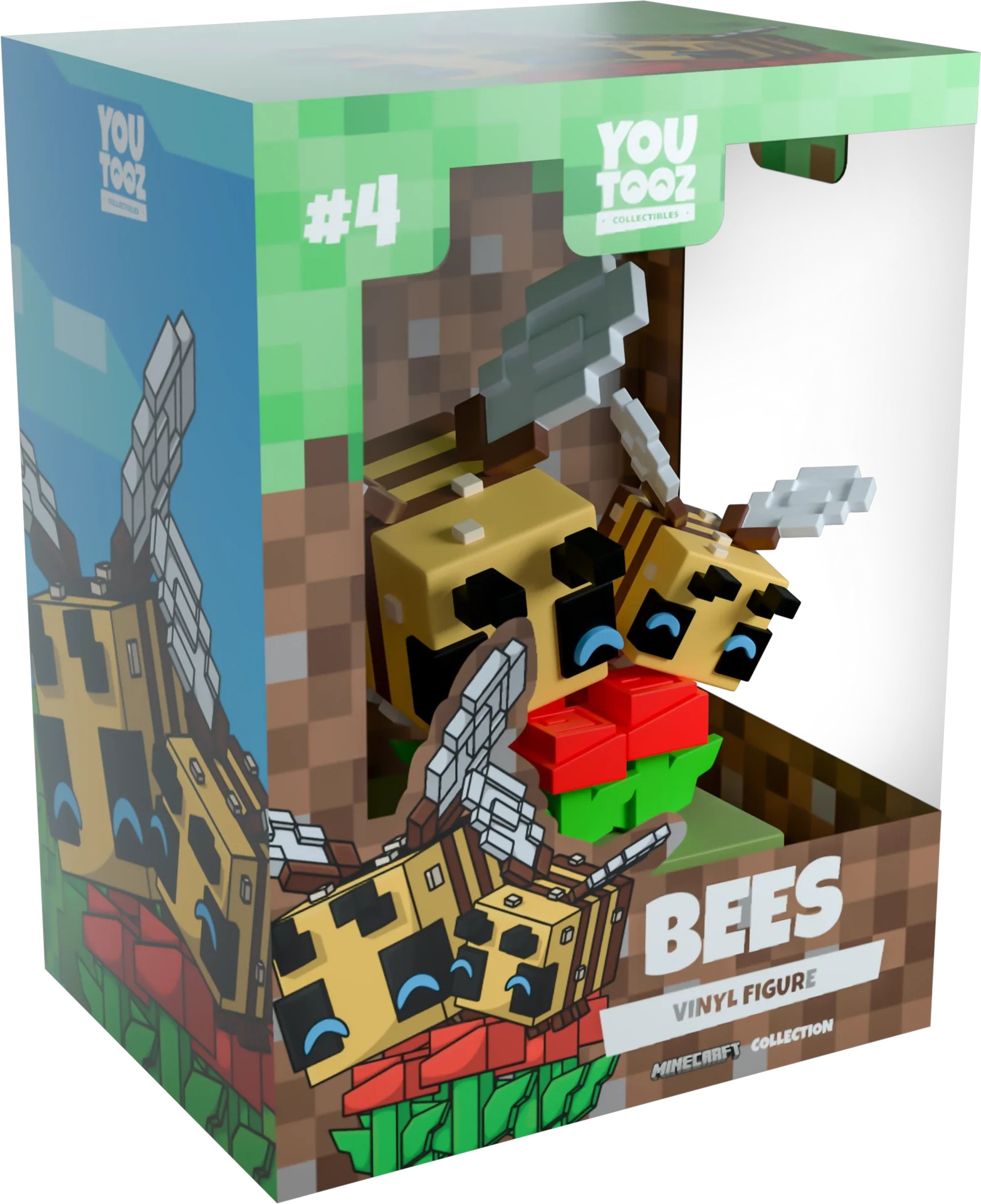 Vite, attrape des fleurs ! Nous avons attiré ces abeilles sur Youtooz et nous devons nous assurer qu'elles restent ici ! Avec une hauteur de 9 cm, elles peuvent profiter du plus beau bouquet de fleurs rouge vif aux longues tiges vertes feuillées. Cette paire d'adorables abeilles utilise ses grandes ailes blanches pour voleter joyeusement sur les pétales à la recherche de pollen. Avec un corps jaune et marron en forme de bloc, six pattes qui dépassent du bas et un court dard à l'arrière, deux antennes noires se trouvent au-dessus de grands yeux aux pupilles bleues brillantes. L'extérieur de leur emballage montre un trio d'abeilles joyeusement au milieu d'un champ rempli de fleurs. Tandis que l'intérieur les entoure de premiers blocs bruns, qui se prolongent sur la pochette de protection, leur silhouette étant visible à travers la grande fenêtre transparente à l'avant de l'emballage. Cet objet de collection est livré dans une pochette extérieure mate, gaufrée et protectrice et un protecteur en plastique de taille personnalisée pour une protection maximale pendant l'expédition.