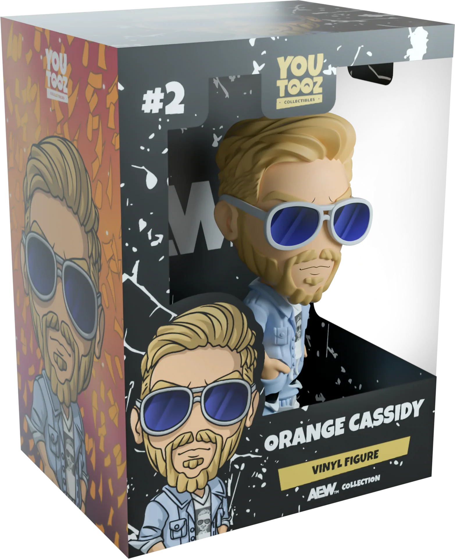 Orange Cassidy est là et prêt à tout ! Mesurant 4,6 pouces, Cassidy porte une coupe décontractée avec des baskets blanches et grises qui rencontrent un jogger bleu clair à revers avec des trous aux genoux, tandis que son torse est orné d'une surchemise bleu clair par-dessus un t-shirt blanc à col en V. avec une photo de lui dessus. Détendu, les deux mains dans les poches, son beau visage est encadré par ses poils dorés et ses cheveux parfaitement coiffés tandis que des nuances grises avec des lentilles bleues reposent sur ses yeux. La boîte d'exposition vitrée a été illustrée pour le montrer debout sur le ring de lutte avec des confettis tombant du ciel tandis que les fans brandissent des pancartes faites à la main en arrière-plan. Tandis que l'intérieur a été conçu avec un motif blanc sporadique moucheté sur un fond noir qui se poursuit sur la pochette de protection alors que sa silhouette est visible à travers la grande fenêtre transparente située à l'avant. Cet objet de collection a été conçu en collaboration avec le membre de la communauté @therealracckun et est livré dans une pochette extérieure de protection mate en relief et un protecteur en plastique de taille personnalisée pour une protection maximale pendant l'expédition.