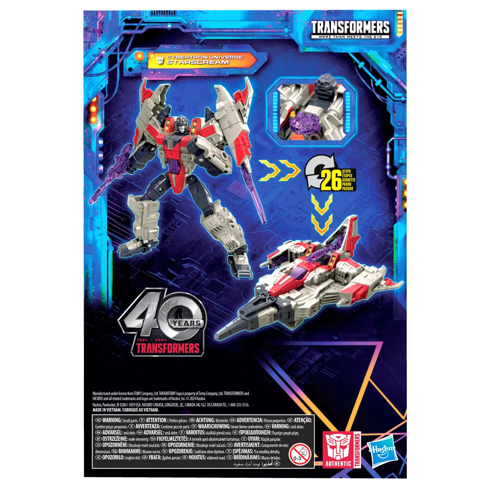 - Cette figurine Cybertron Universe Starscream de 17,5 cm a une déco et un design inspirés du dessin animé Transformers: Cybertron
