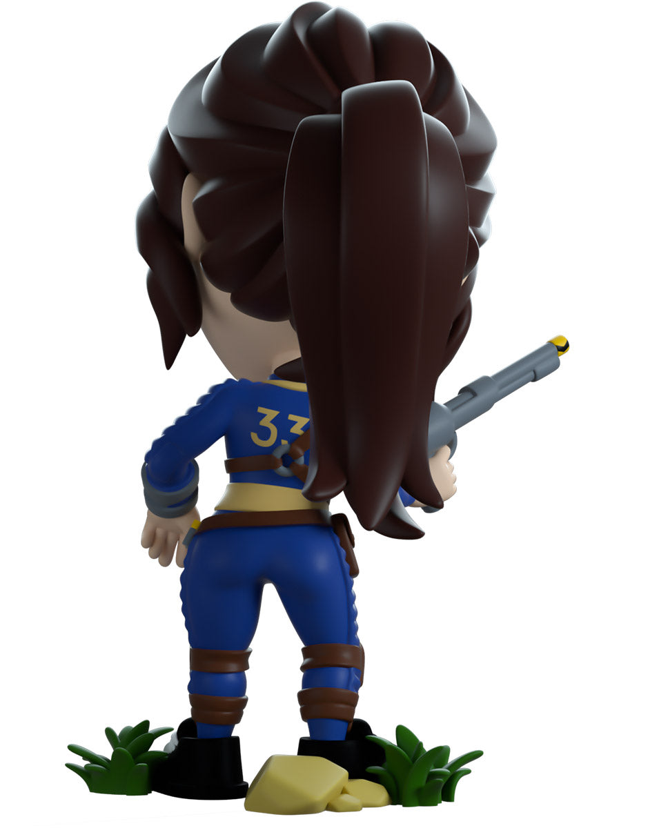 Lucy a émergé de la sécurité de son coffre-fort pour explorer le tout nouveau monde de Youtooz ! Penchée sur le côté, du haut de son mètre quatre-vingt-dix, un sourire aux lèvres roses s'étire sur son visage. Ses longs cheveux bruns tombent de chaque côté pour l'encadrer parfaitement, le reste étant tiré en une épaisse queue de cheval qui lui tombe dans le dos. Elle tient un pistolet à long canon dans la main droite et porte une combinaison intégrale bleu et jaune du coffre-fort, recouverte de bretelles marron et d'une armure rembourrée. Son fidèle Pip-Boy gris est posé sur son poignet gauche. L'extérieur de son emballage montre Lucy dans un vaste terrain vague et sablonneux, le regard fixé sur un bâtiment délabré à l'horizon. L'intérieur est en ciment gris sale, peint aux couleurs du coffre-fort bleu et jaune sur le dessus, qui se prolonge sur la pochette de protection, où l'on peut apercevoir sa silhouette à travers la grande fenêtre transparente sur le devant. Cet objet de collection est livré dans une pochette de protection mate gaufrée et une protection en plastique sur mesure pour une protection optimale pendant le transport.